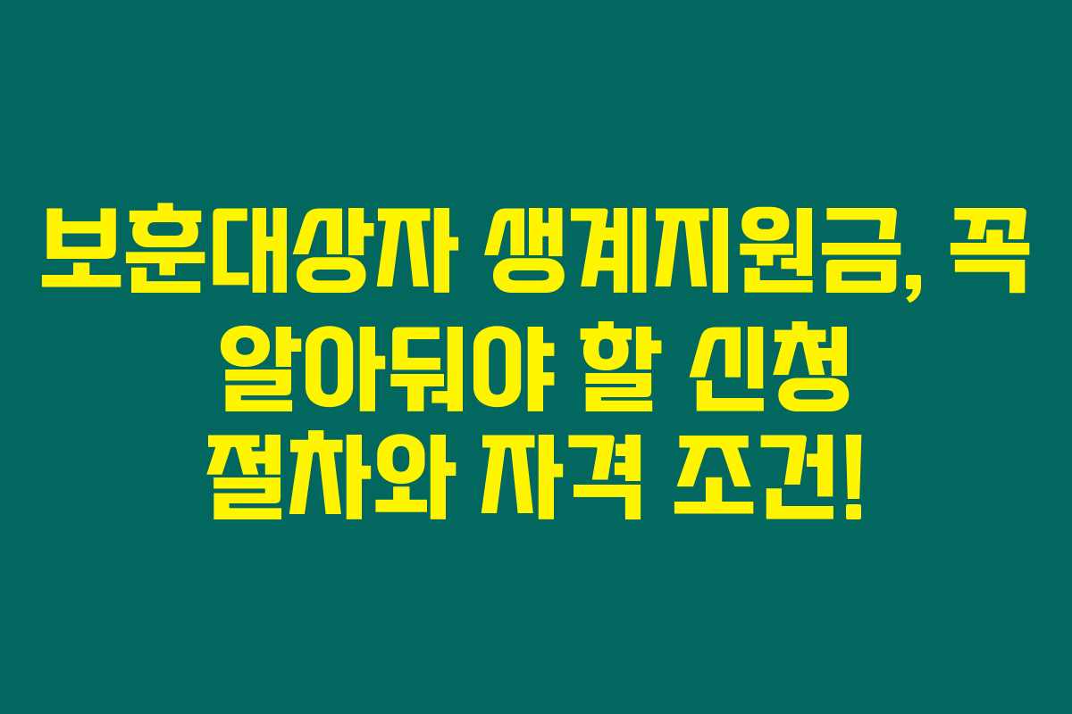 보훈대상자 생계지원금, 저소득 고령 보훈대상자, 생계 지원 절차, 자격 조건, 신청 방법, 생활 안정은 꼭 기억해 주세요!