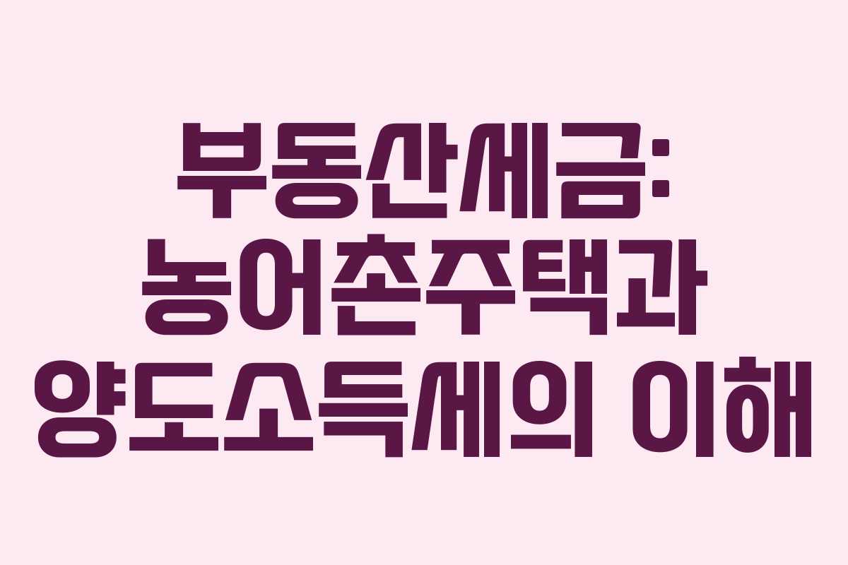 부동산에 대한 세금은 복잡하게 느껴질 수 있지만, 농어촌주택과 관련된 양도소득세의 특례를 이해하면 절세 전략을 세우는 데 큰 도움이 됩니다. 특히, 다주택 중과세 제도를 통해 농어촌주택의 장점을 살펴보겠습니다.