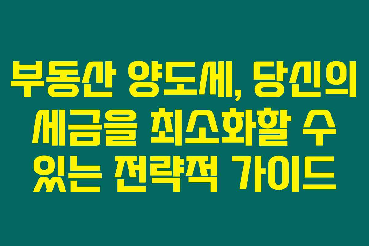 부동산 양도세, 당신의 세금을 최소화할 수 있는 전략적 가이드