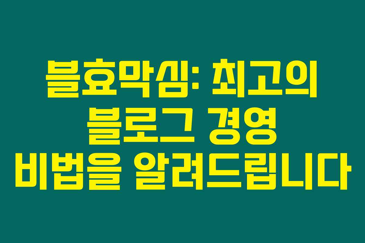 블로그 운영을 시작하고 싶은데 어떤 전략을 써야 할지 막막하시죠? 블효막심을 통해 성공적인 블로그를 운영하는 방법을 소개합니다. 아래를 읽어보시면 초기 투자 없이도 블로그에서 수익을 창출할 수 있는 방법을 배울 수 있어요!