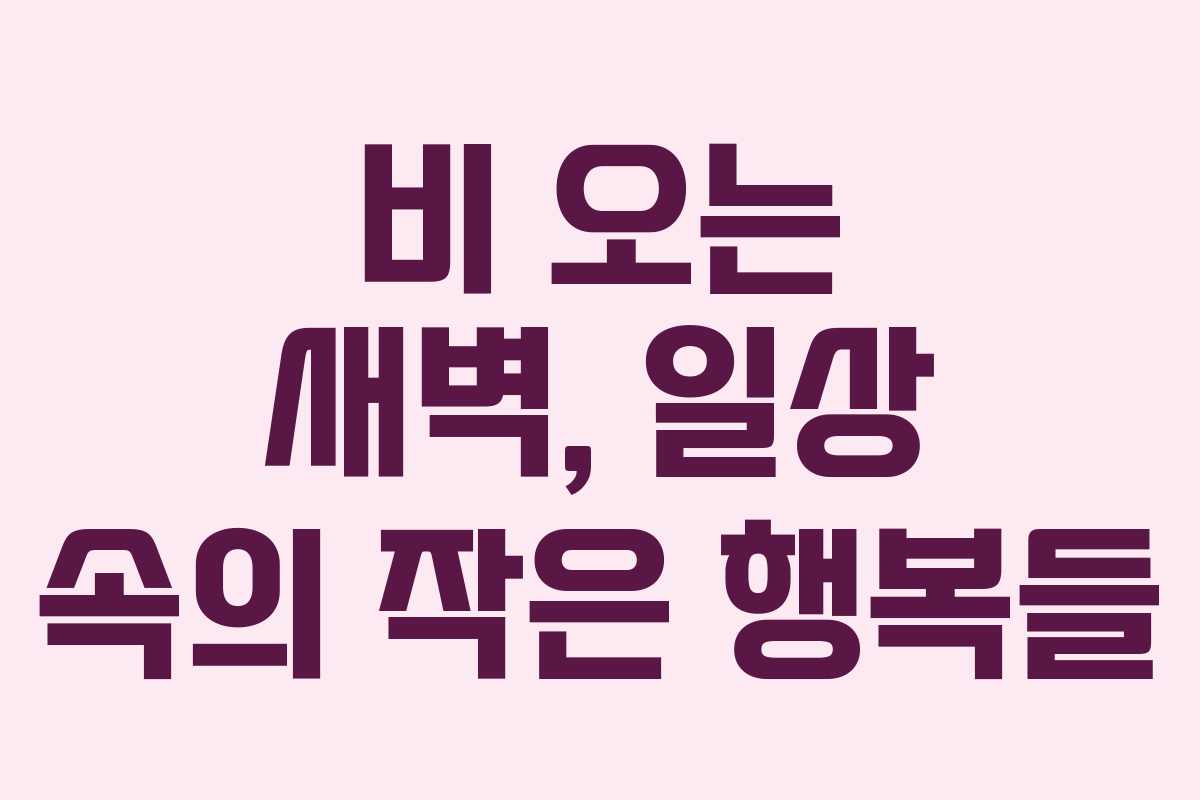 최근에 겪은 일들로 인해 일상에서 느끼는 다양한 감정과 경험들을 정리해보았습니다. 특히 비 오는 날의 불편함과 그 속에서도 찾은 소소한 행복에 대해 이야기해볼까 합니다.