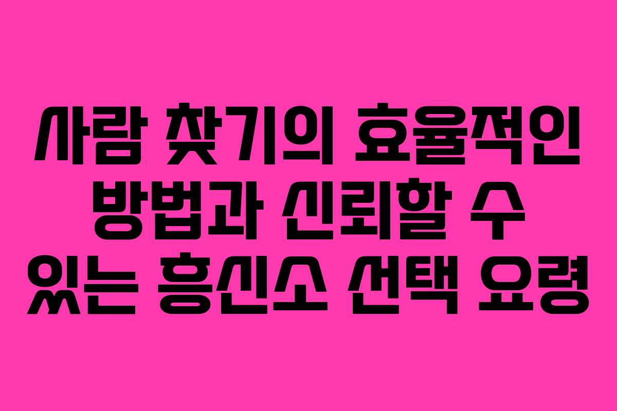 사람 찾기를 위해 흥신소를 선택할 때, 가장 먼저 고려해야 할 사항은 그들의 신뢰성입니다. 신뢰할 수 있는 흥신소를 선정하는 것은 성공적인 사람 찾기의 첫걸음입니다. 다음 사항들을 체크해야 합니다.