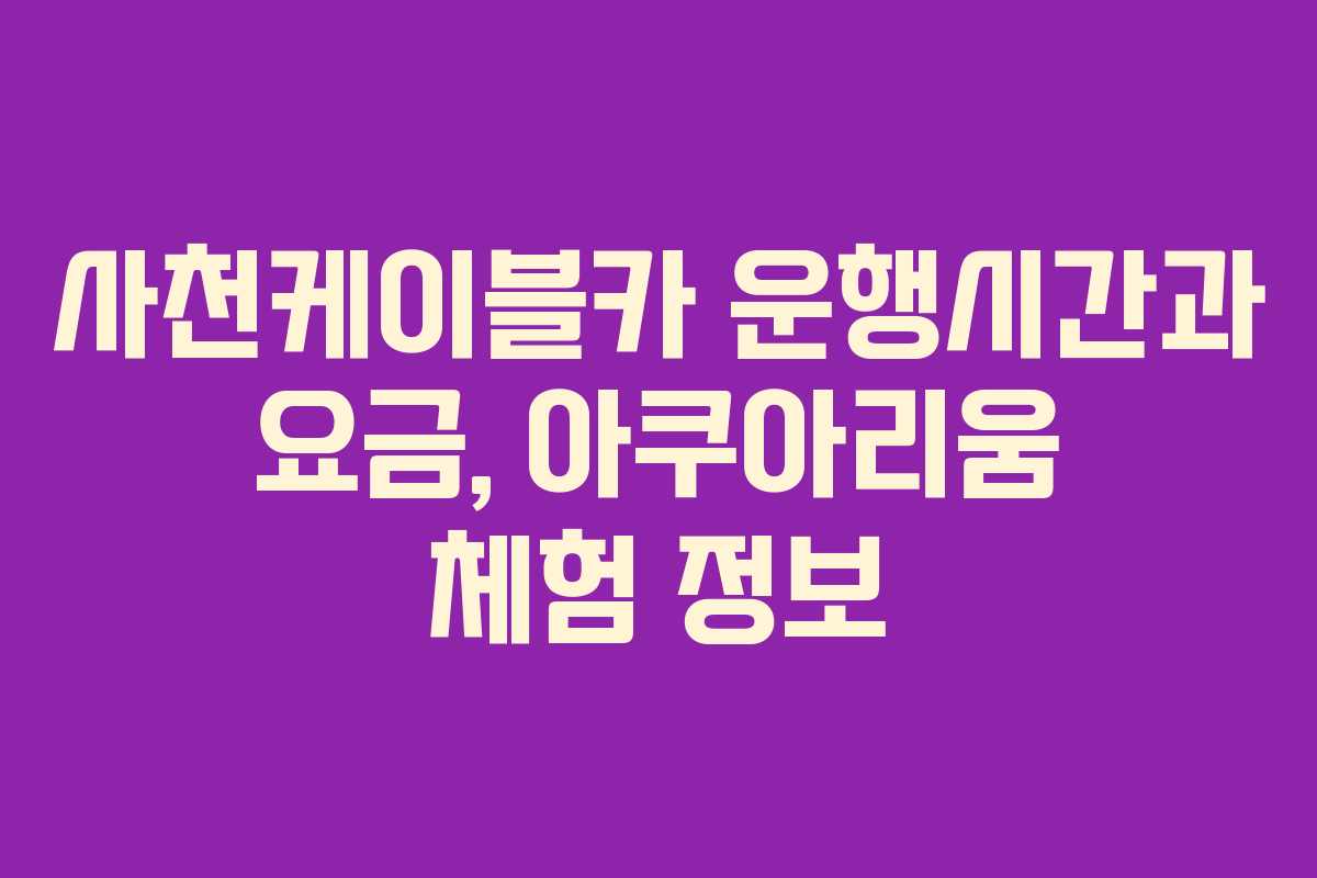 사천케이블카는 경남 사천시에 위치한 관광 명소로, 바다와 섬, 산을 연결하는 독특한 경관을 제공합니다. 이곳은 방문객들에게 다채로운 체험을 제공하며, 다양한 요금제와 통합권이 마련되어 있어 선택의 폭이 넓습니다. 이 글에서는 사천케이블카의 주소, 주차장 정보, 운행시간, 요금, 아쿠아리움 통합권에 대한 상세 정보를 안내합니다.