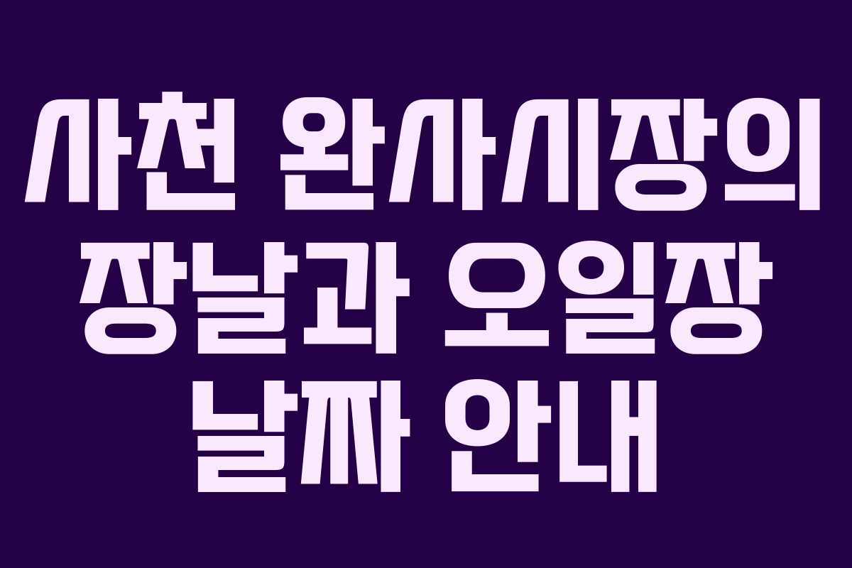 사천 완사시장은 경상남도 사천시 곤명면 정곡리에 위치하며, 지역 주민들의 삶과 밀접하게 연결되어 있는 전통 시장입니다. 이곳은 조선시대부터 이어져 온 역사를 가지고 있으며, 현재도 매달 정해진 날짜에 장이 열립니다. 특히 이 시장은 오일장과 5일장이 함께 운영되어 많은 이들에게 사랑받고 있습니다. 2026년 기준으로 장날과 오일장 날짜를 확인하여 방문 계획을 세우는 것이 중요합니다.