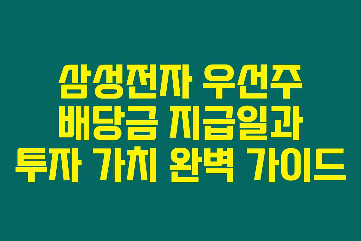 삼성전자 우선주 배당금 지급일을 알고 계신가요? 배당금을 통해 매달 10만 원의 수익을 목표로 한다면 삼성전자 우선주에 대한 이해가 필수적입니다. 과거 배당금의 지급일과 예측된 배당금 지급일을 총정리했습니다. 이 글을 통해 삼성전자 우선주에 대한 기본 정보와 배당 수익률, 투자 가치를 파악해보세요.