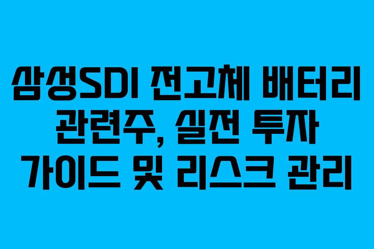 전고체 배터리 기술은 에너지 저장 분야에서 혁신적인 변화를 가져오고 있습니다. 제가 처음 이 기술에 대해 알게 된 것은 친구와의 대화 중이었습니다. 친구가 전고체 배터리에 대한 기사를 읽고 이야기하던 중, 이 기술이 기존의 리튬이온 배터리보다 몇 배 더 안전하고 효율적이라는 점에 매료되었습니다. 그때부터 저는 이 분야의 기업과 관련 주식에 대한 관심을 갖게 되었고, 오늘은 그 경험을 바탕으로 삼성SDI와 관련 기업의 투자 가이드 및 리스크 관리에 대해 이야기해 보겠습니다.