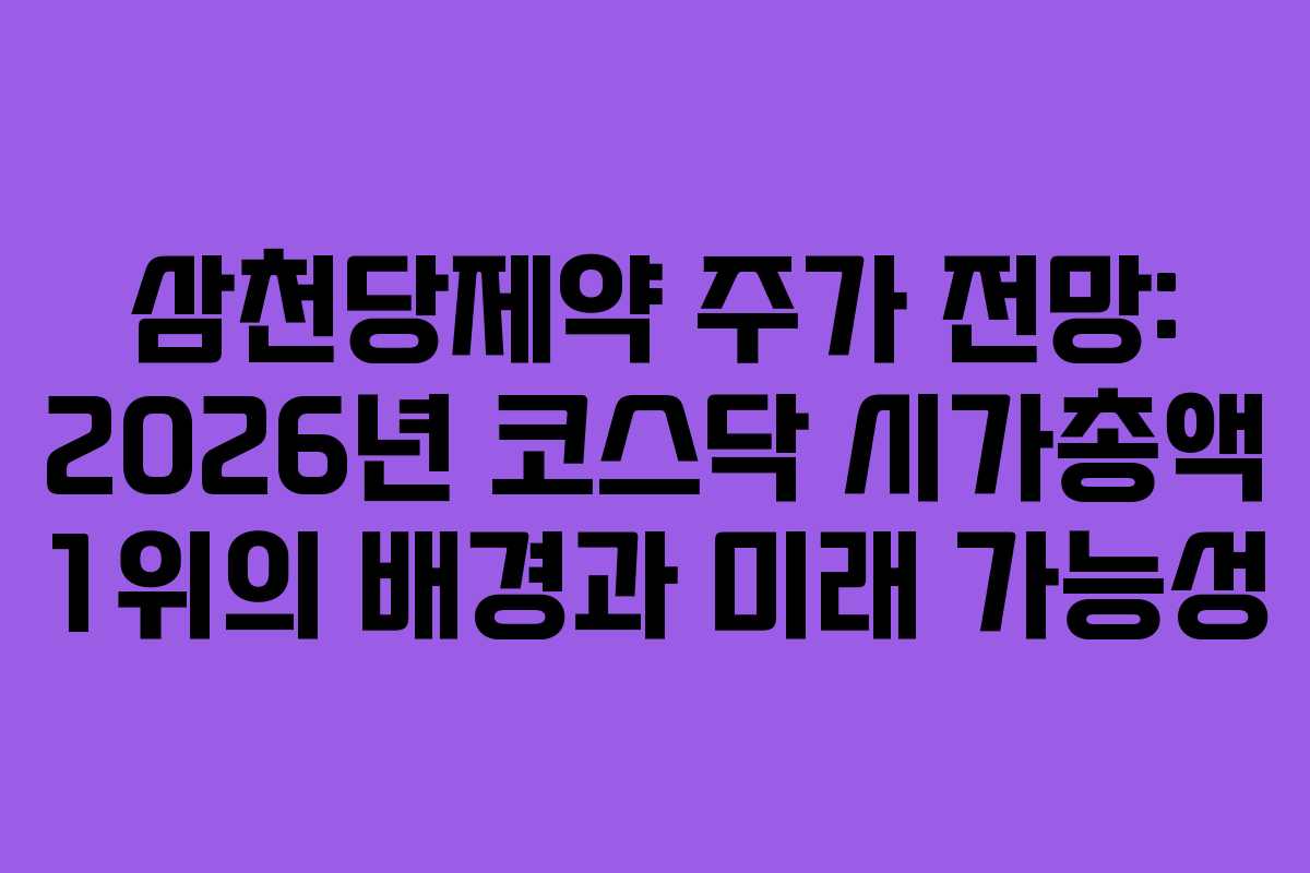 삼천당제약 주가 전망: 2026년 코스닥 시가총액 1위의 배경과 미래 가능성