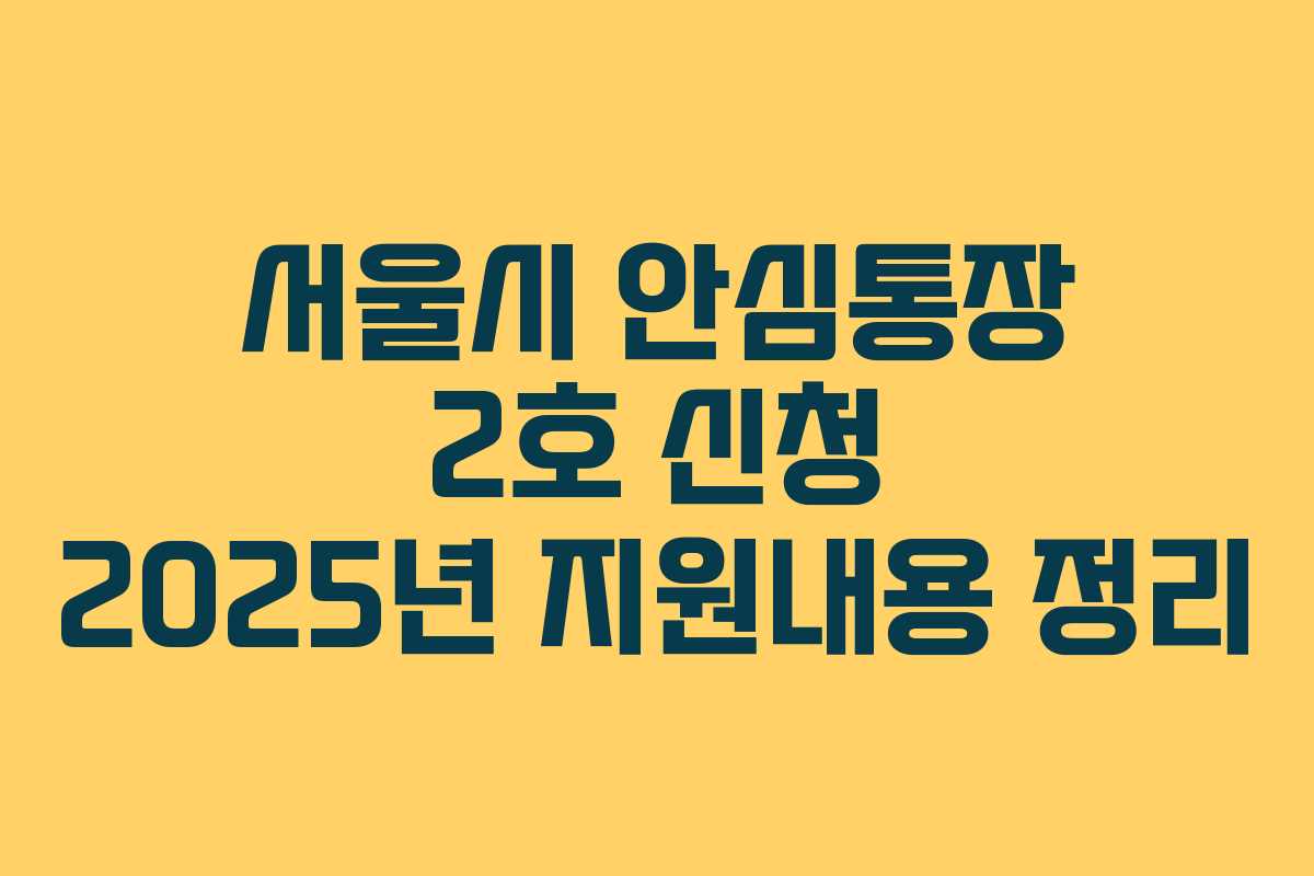 서울시는 경제적 안전을 위해 안심통장 2호를 운영하고 있습니다. 이 프로그램은 경제적 어려움을 겪고 있는 가구에 실질적인 지원을 제공합니다. 이번 글에서는 2025년 안심통장 2호의 지원 내용과 신청 절차에 대해 상세히 알아보겠습니다.