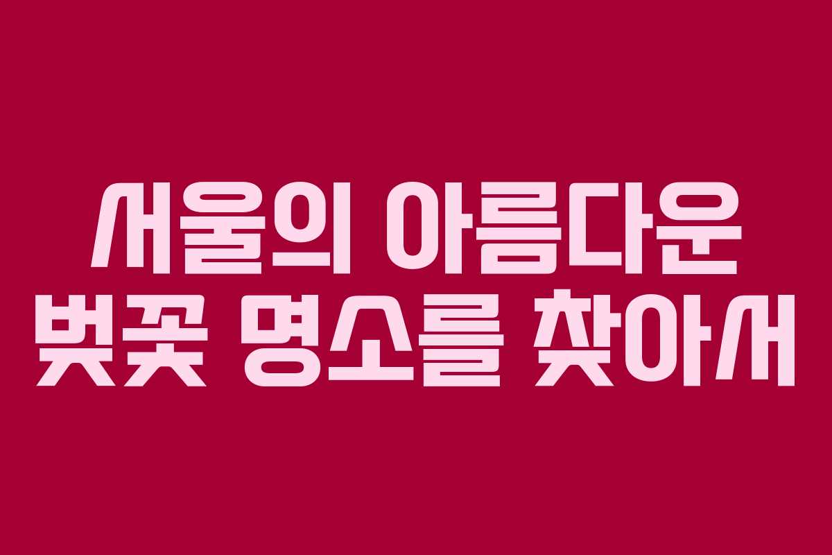봄이 오는 모습과 함께 서울의 벚꽃 명소를 찾아 특별한 추억을 만들어 보세요. 사랑하는 사람들과 함께하는 벚꽃 구경은 잊지 못할 순간이 될 것입니다.