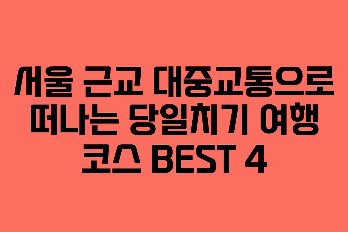 바쁜 일상 속에서 짧은 휴식을 원하는 사람들에게 대중교통을 이용한 당일치기 여행은 매우 매력적입니다. 서울 근교에서는 지하철과 버스만으로도 쉽게 다녀올 수 있는 아름다운 여행지가 많습니다. 이 글에서는 대중교통으로 쉽게 접근할 수 있는 여행지 네 곳을 소개합니다. 누구나 특별한 추억을 만들 수 있는 기회를 제공합니다.