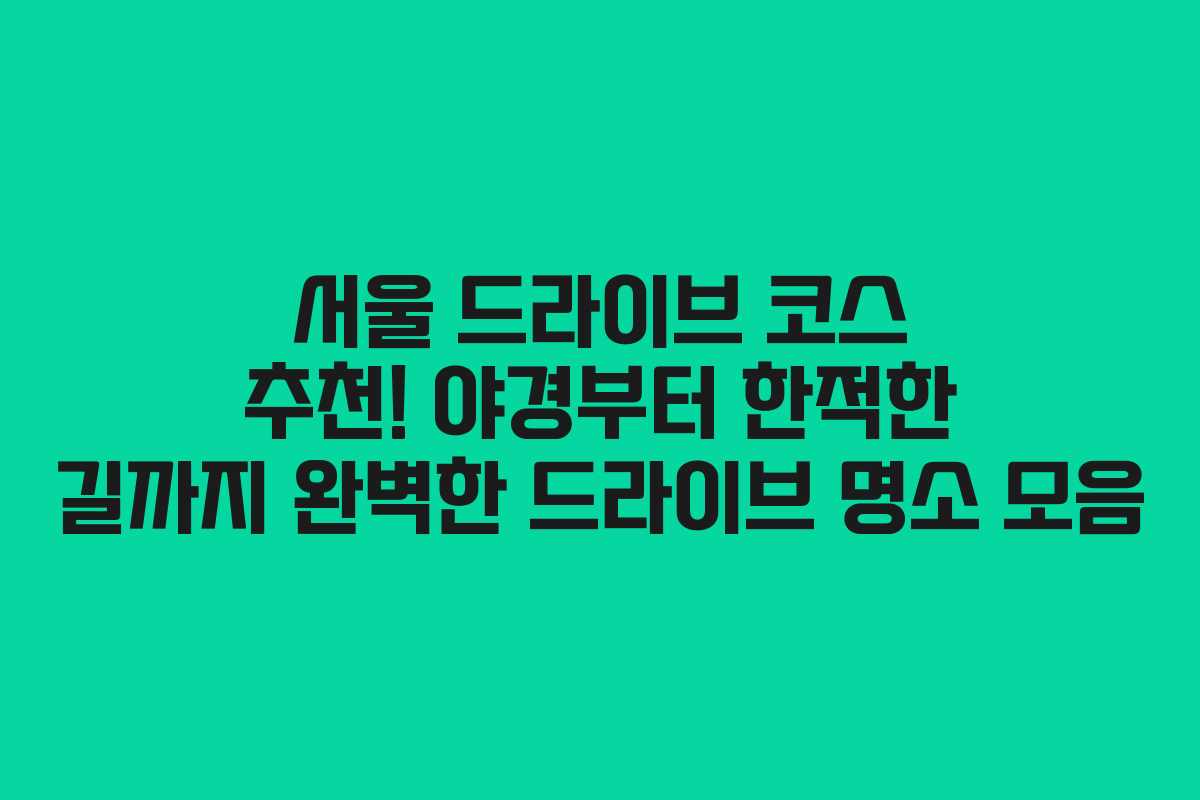 서울은 도심 속에서 드라이브를 즐길 수 있는 곳들이 많습니다. 바쁜 일상 속에서 잠시 벗어나 자연과 함께할 수 있는 드라이브 코스를 찾는 분들에게 안성맞춤인 다양한 코스들을 소개합니다. 이 글에서는 서울의 아름다운 야경과 고요한 길을 동시에 즐길 수 있는 드라이브 명소들을 모아보았습니다.
