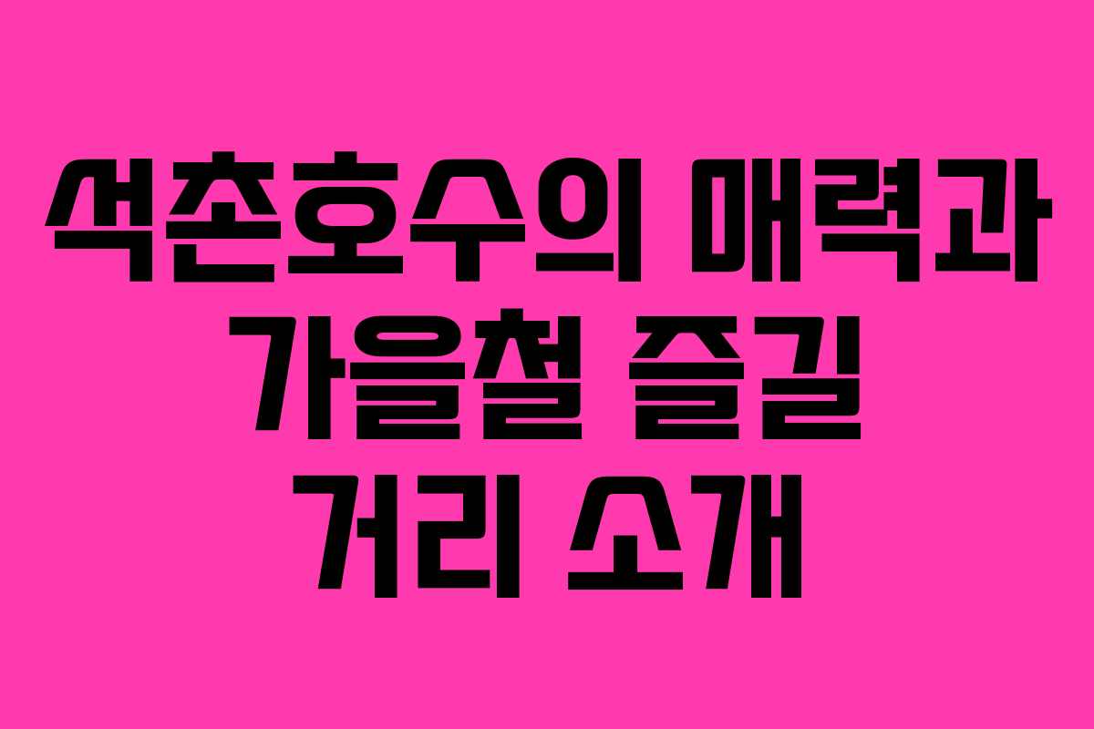 서울 송파구의 석촌호수는 도시 속에서 자연과 휴식을 동시에 즐길 수 있는 최적의 공간이다. 이곳은 서울 시민뿐만 아니라 많은 관광객들에게 사랑받는 명소로, 특히 가을철에는 아름다운 단풍으로 물들어 더욱 매력적인 풍경을 선사한다. 석촌호수는 가족, 연인, 혼자서 사색을 즐기려는 사람들에게 모두 적합한 장소로, 다양한 연령층과 목적을 가진 사람들에게 인기를 끌고 있다.