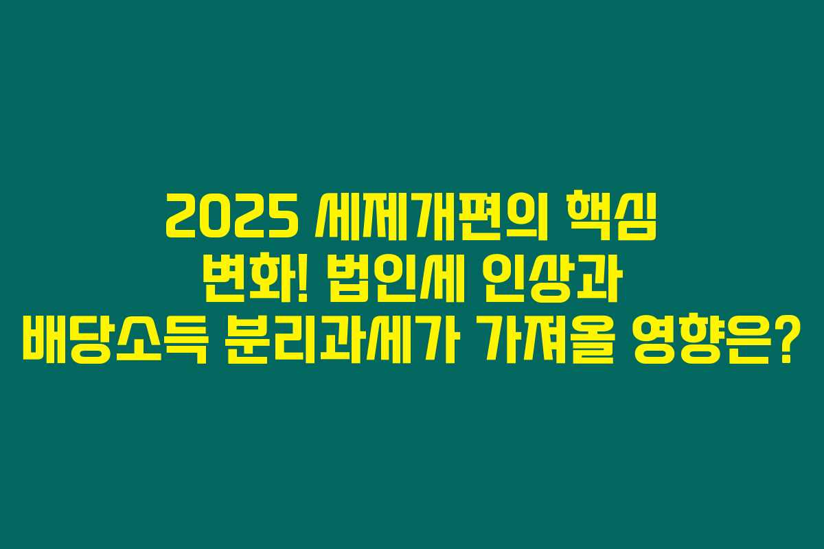 2025년 세제개편에서 법인세 최고세율이 24%에서 25%로 인상됩니다. 배당소득 세율은 분리과세로 변경되어 최대 35%로 낮아질 수 있습니다.