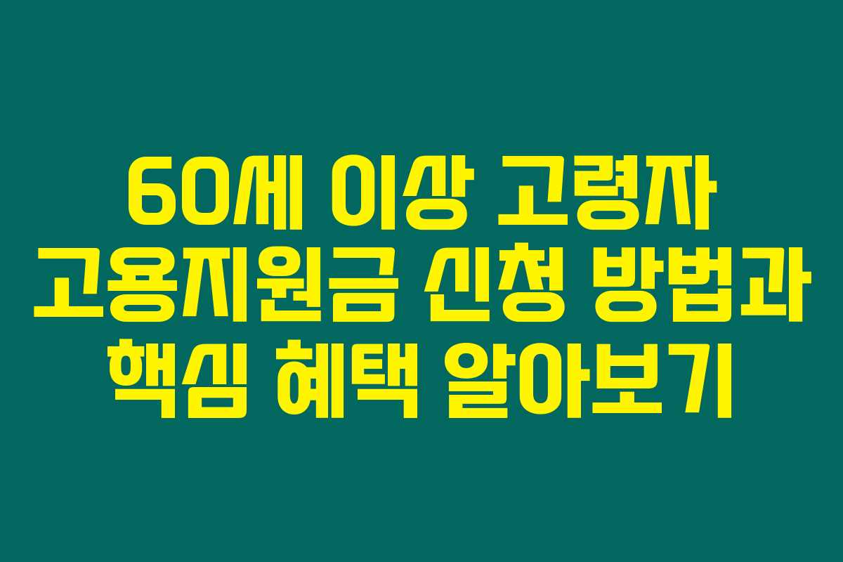 고령자 고용지원금, 정말 필요한 분들에게 큰 도움이 되는 제도인데요. 특히 60세 이상 고령자분들이 계속 일하고 싶은 마음이 있다면 이 정보를 꼭 알아두셔야 해요. 아래를 읽어보시면 고령자 고용지원금에 대한 모든 것을 정리해 드릴게요.