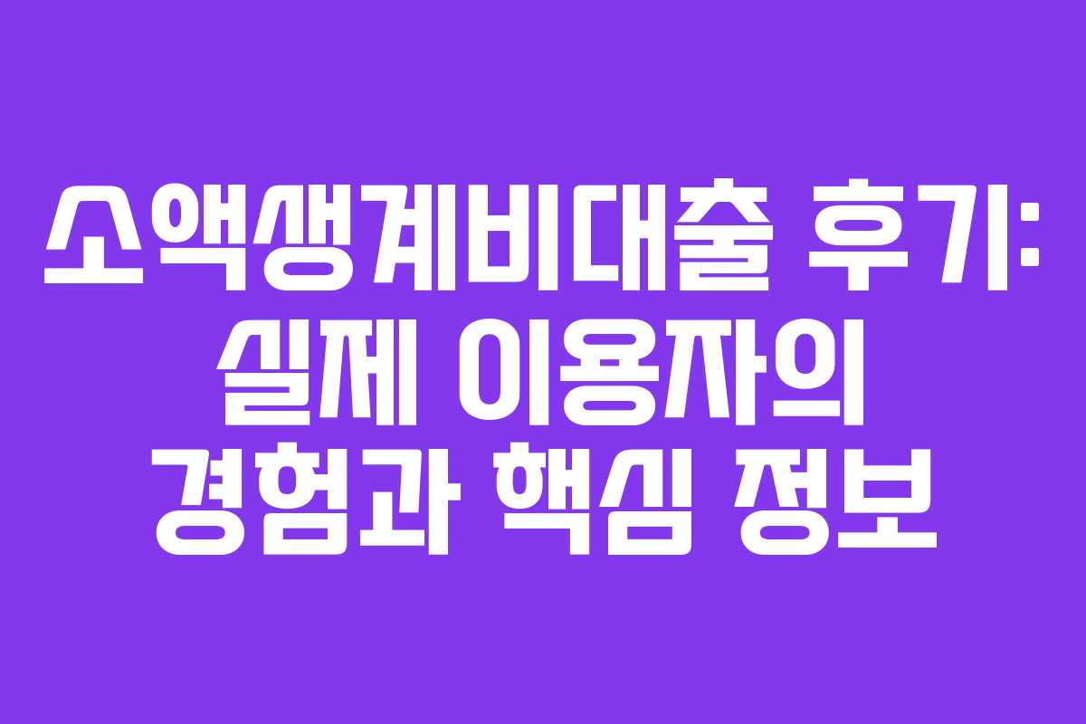 소액생계비대출 후기: 실제 이용자의 경험과 핵심 정보