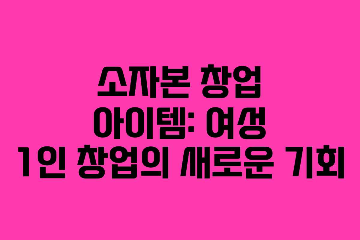 소자본 창업 아이템: 여성 1인 창업의 새로운 기회