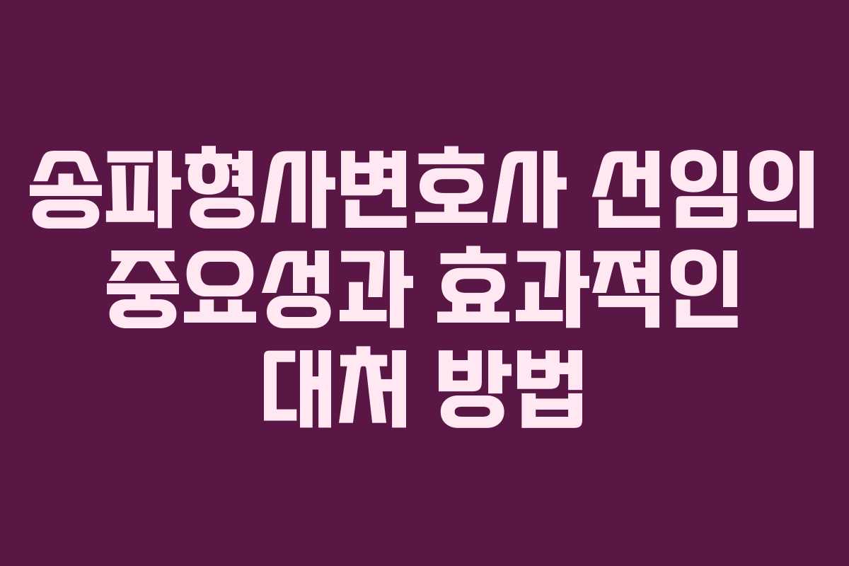 송파형사변호사 선임의 중요성과 효과적인 대처 방법