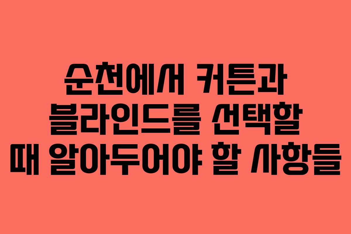 순천의 기후와 생활 패턴을 고려하여 커튼과 블라인드를 선택하는 것이 중요합니다. 여름철과 겨울철에 맞는 요구사항을 반영하지 않으면 만족스러운 결과를 얻기 어려울 수 있습니다.