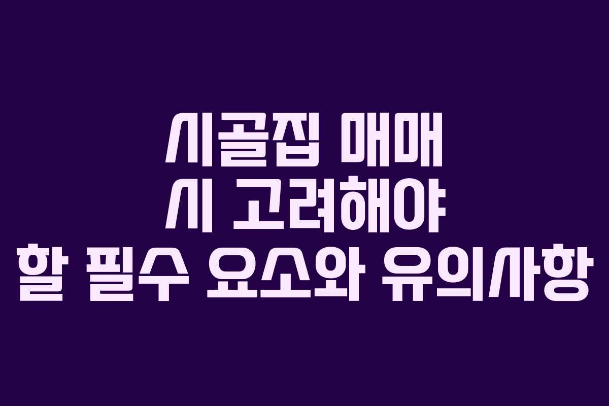 최근들어 많은 사람들이 도시를 떠나 시골에서 새로운 삶을 꿈꾸고 있다. 그러나 시골집을 구매할 때는 여러 가지 유의해야 할 점이 존재한다. 도시와는 다른 환경 속에서의 매매는 또 다른 도전이 될 수 있다. 본 글에서는 시골집 매매 과정에서 주의해야 할 사항들을 정리하였다.