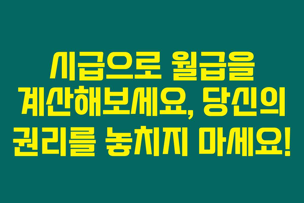 시급계산기를 사용하면 월급을 정확하게 계산할 수 있답니다. 기억하시겠지만, 제가 몇 번의 사례를 통해 경험한 적이 있어요. 근무한 시간과 급여가 다르게 산정되는 상황들은 정말 우스꽝스러웠거든요. 이럴 때 시급 계산기를 통해 매번 확인해보시는 게 정말 필요해요.