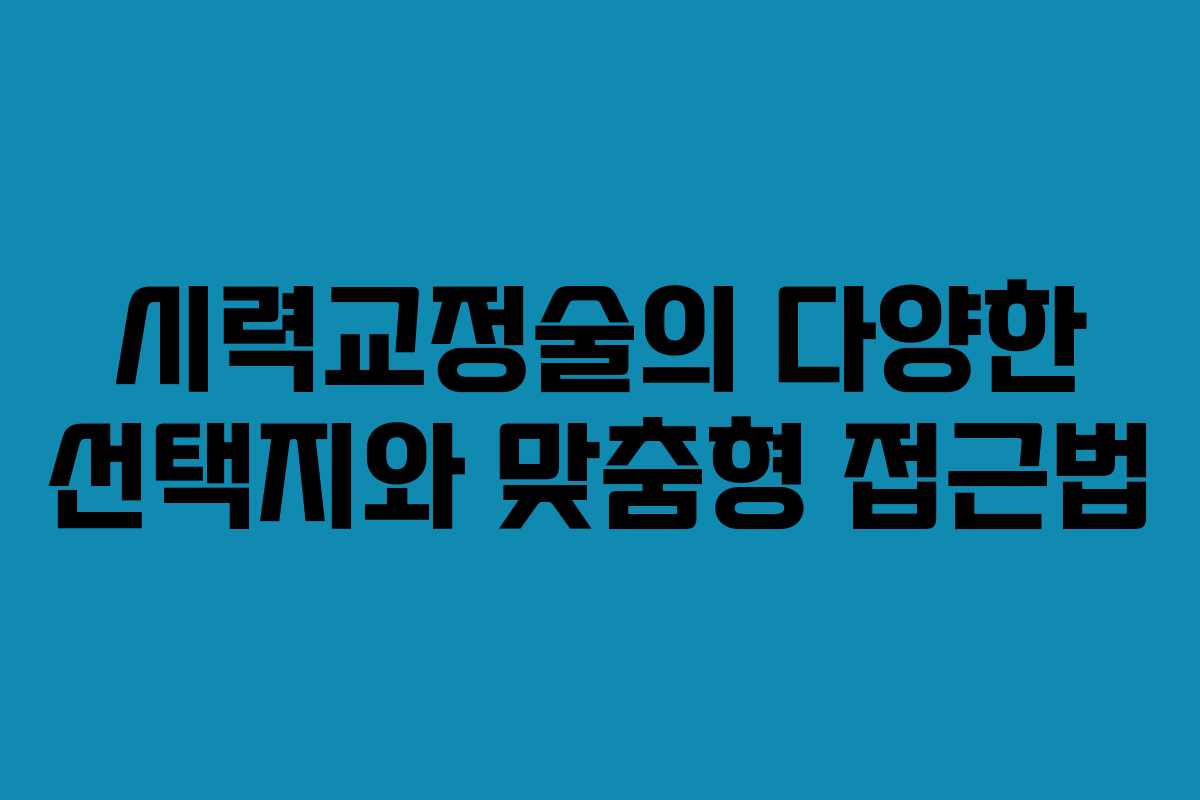 시력교정술은 많은 사람들이 관심을 가지는 주제 중 하나입니다. 특히 라식수술은 널리 알려진 방법이지만, 개인의 눈 상태에 따라 적합한 수술 방법은 달라질 수 있습니다. 이번 글에서는 시력교정술의 다양한 옵션과 각 경우에 적합한 수술 방법을 소개합니다.