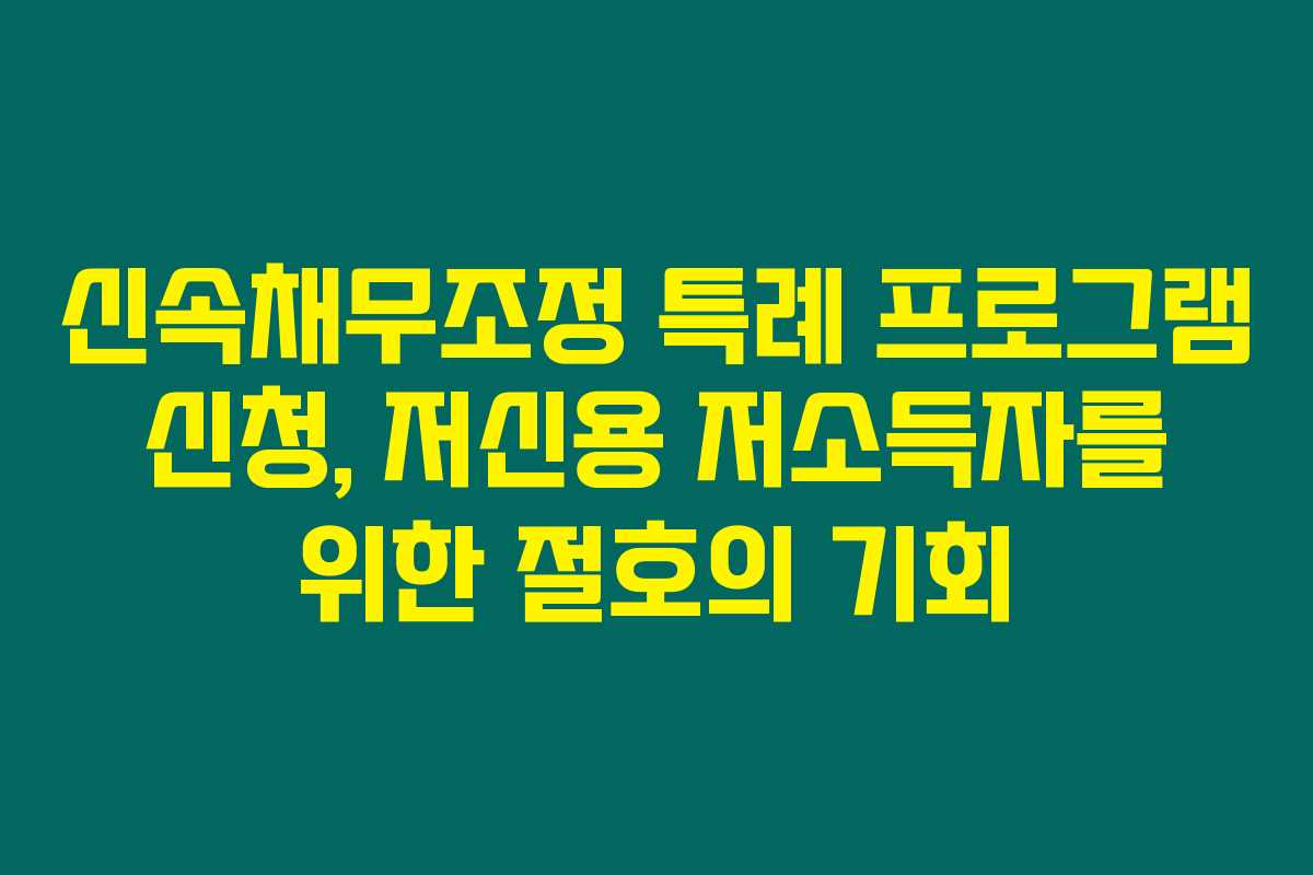 제가 직접 경험해본 결과로는, 신속채무조정 특례 프로그램은 저신용자와 저소득자, 그리고 소상공인들에게 새로운 희망이 되어줄 만한 제도입니다. 최근 정부는 이러한 프로그램을 통해 많은 사람들의 경제적 부담을 줄이고자 노력하고 있는데요, 아래를 읽어보시면 그 신청 자격, 금리, 그리고 소상공인에게 미치는 영향에 대해 자세히 알아볼 수 있습니다.