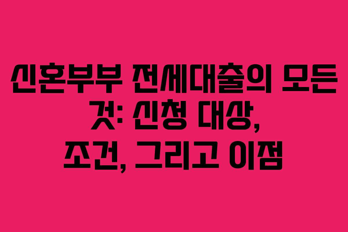 신혼부부 전세대출의 모든 것: 신청 대상, 조건, 그리고 이점