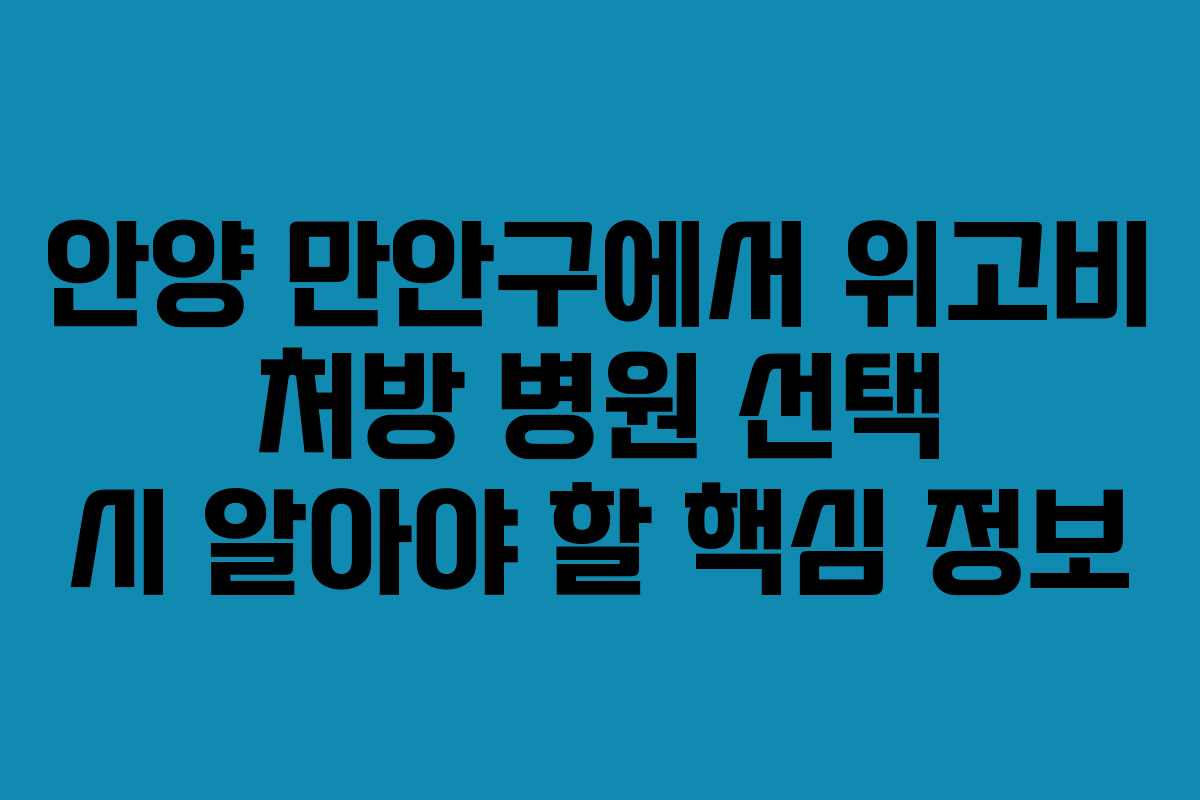 안양 만안구 안양동에서 위고비 처방을 고려하는 경우, 병원의 선택은 여러 요소를 고려해야 하는 중요한 과정입니다. 가격, 용량, 효과와 부작용을 종합적으로 이해하면 보다 올바른 결정을 내릴 수 있습니다. 다음은 위고비에 대한 상세한 정보와 함께 병원 선택 시 도움이 될 팁을 소개합니다.