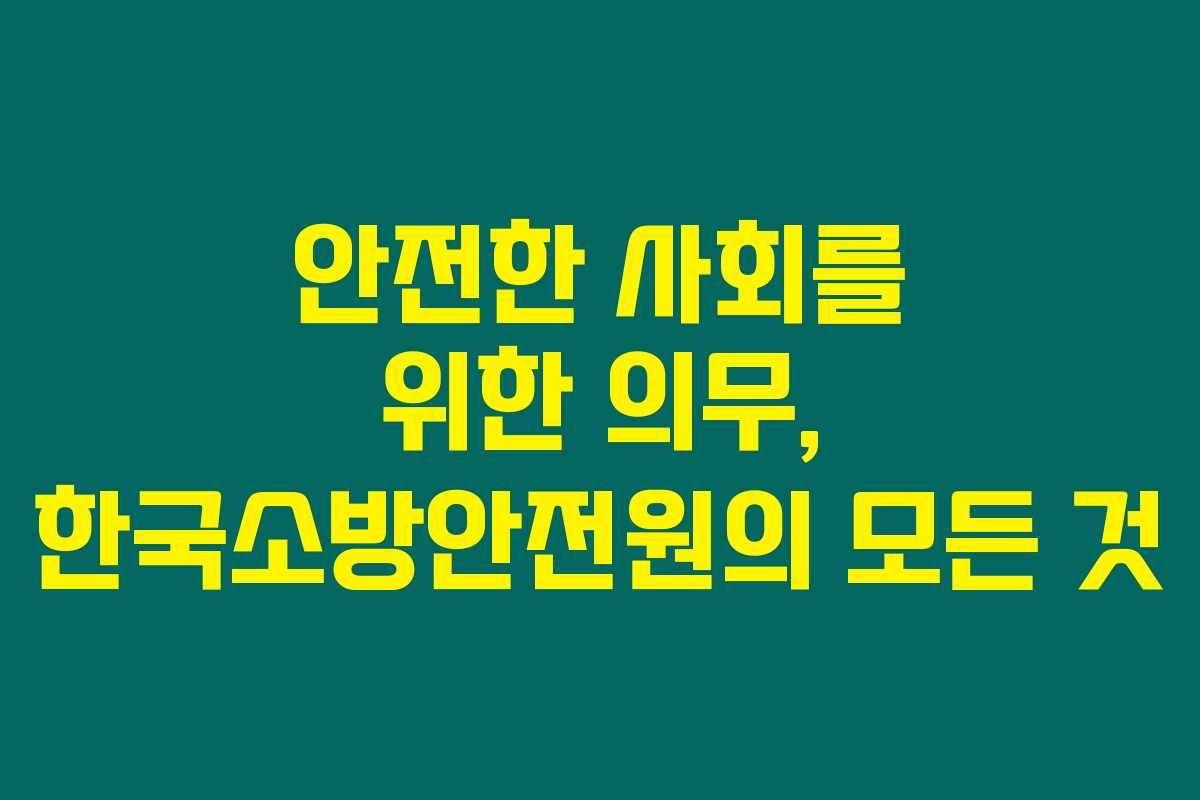 한국소방안전원은 우리 사회의 안전을 위해 끊임없이 노력하고 있으며, 그들의 다양한 서비스와 교육을 통해 여러분도 안전한 사회에 기여할 수 있답니다. 많은 분들이 한국소방안전원 홈페이지를 방문하여 귀중한 정보를 얻고, 안전한 사회의 일원으로 참여해 보세요.