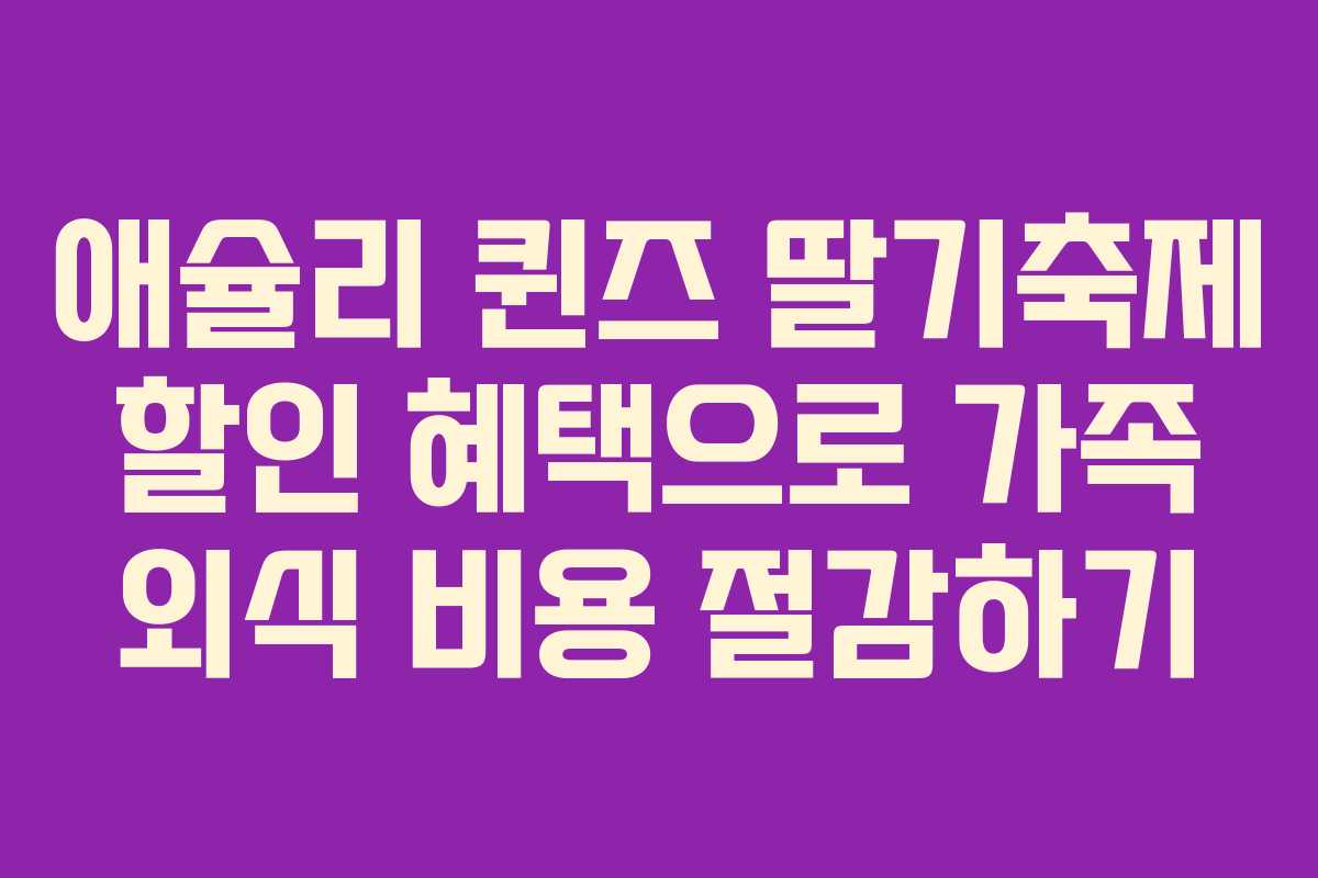 가족과 함께 하는 외식은 소중한 시간입니다. 애슐리 퀸즈에서 열리는 딸기축제는 그런 특별한 순간을 더욱 즐겁게 만들어줄 행사입니다. 매년 열리는 이 축제는 특히 딸기를 좋아하는 아이들에게 큰 즐거움을 선사합니다. 이번 축제에 맞춰 애슐리에서의 외식 비용을 절감할 수 있는 다양한 방법을 살펴보겠습니다.