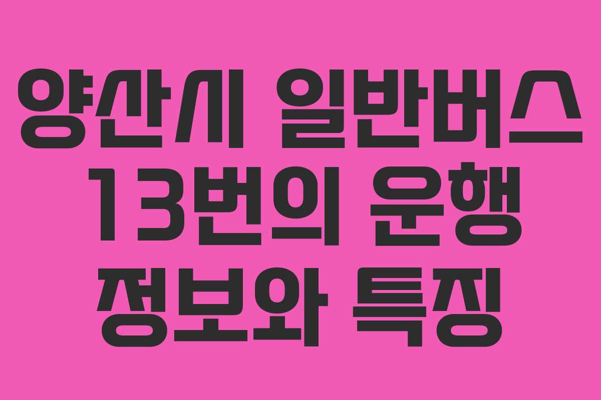 양산시 일반버스 13번은 지역 주민들의 편리한 이동을 위한 필수적인 대중교통 수단으로, 각종 경유지와 함께 지역사회의 중심 역할을 하고 있다. 이 노선의 특징과 운영 정보는 대중교통을 이용하는 시민들에게 큰 도움이 될 것이다.