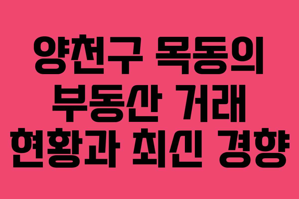 - 양천구 목동 부동산 시장에서의 실전 가이드