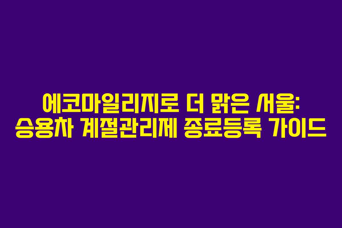 서울시 에코마일리지는 환경 보호와 일상 속 편익을 함께 추구하는 제도입니다. 에너지 사용을 줄이고 지속 가능한 습관을 실천하는 한편, 계절관리제 종료등록으로 주행거리 조건을 충족한 경우 마일리지 혜택을 받으세요. 참여를 통해 더 깨끗한 도시를 함께 만들어갑시다.