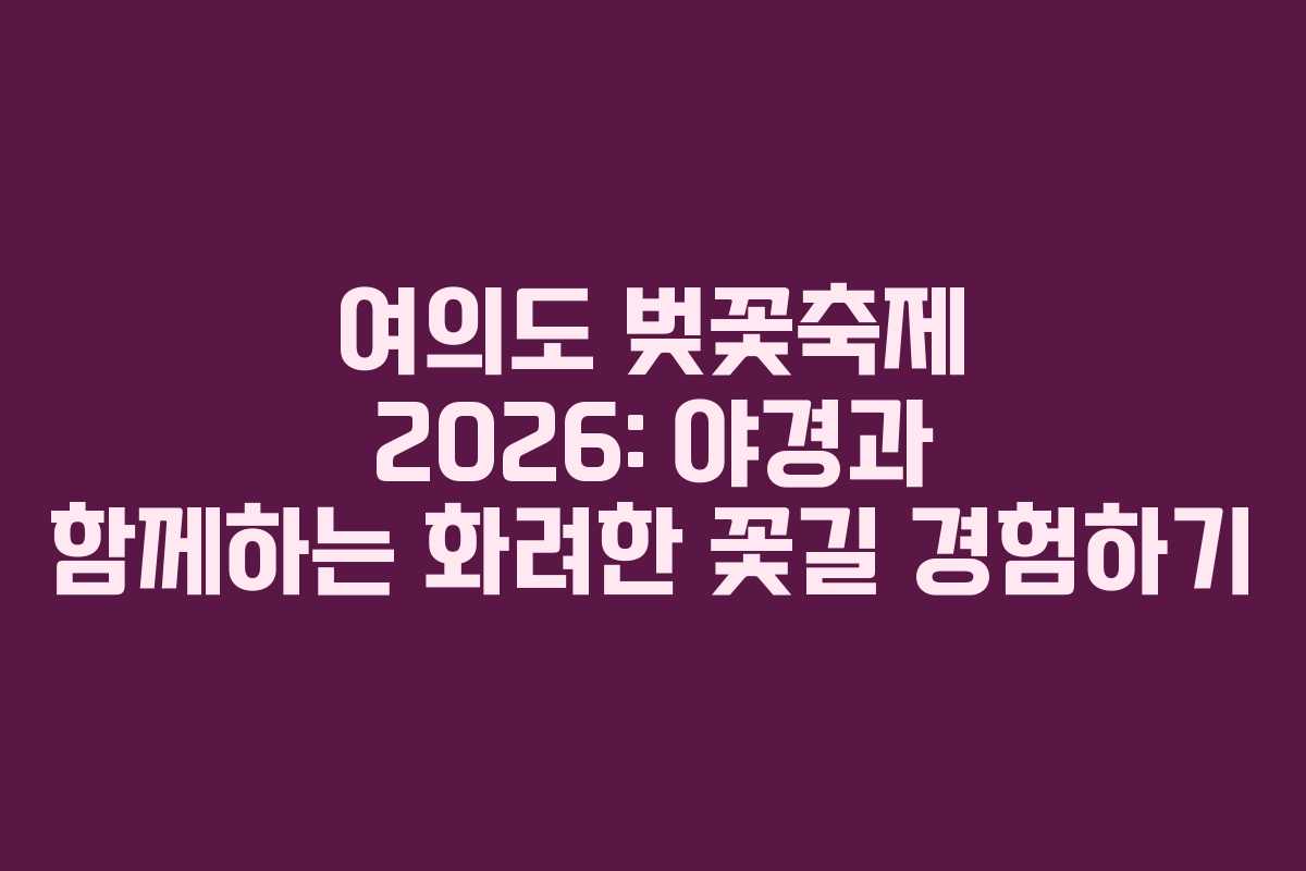 2026년 봄, 여의도에서 펼쳐지는 벚꽃의 아름다움은 많은 이들에게 잊지 못할 순간을 선사합니다. 여의도 윤중로는 서울의 대표적인 벚꽃 명소로, 매년 수많은 관광객과 시민들이 이곳을 찾습니다. 밤에 더욱 빛나는 벚꽃을 즐기기 위해 이번 포스팅에서는 여의도 벚꽃축제의 일정, 꿀팁, 야경 후기를 중심으로 살펴보겠습니다.