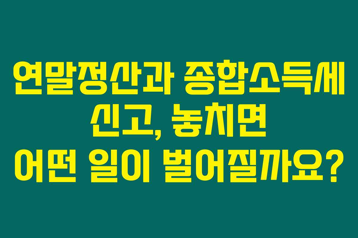 연말정산은 직장인에게 있어 ’13번째 월급’의 의미를 지니며, 이를 통해 한 해 동안 발생한 다양한 소득공제를 활용해 세금을 환급받거나 추가로 납부해야 할 세액을 정산하는 절차입니다. 그러나 연말정산이나 종합소득세 신고를 하지 않으면 어떤 일들이 벌어질까요? 제가 알아본 바로는, 불이익이 큽니다.
