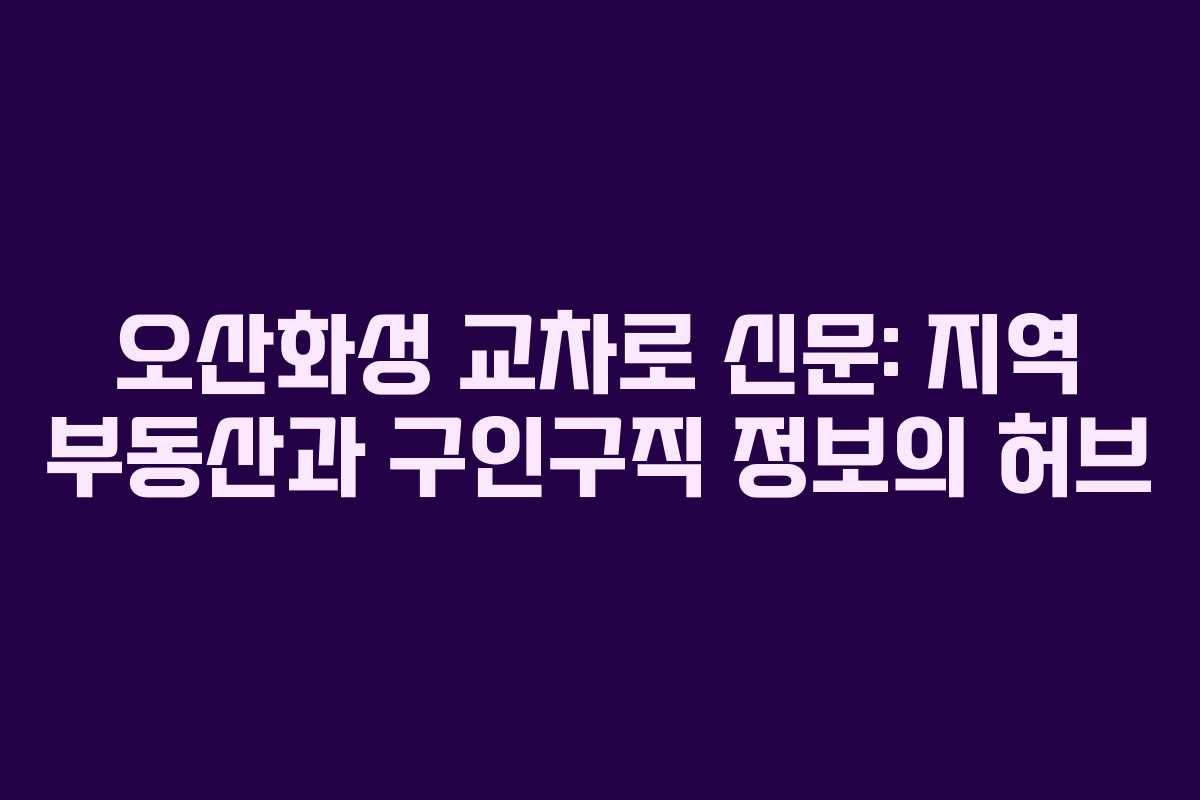 오산화성 교차로 신문은 지역 주민들에게 필요한 정보를 제공하며, 이를 통해 지역 사회의 연결을 강화합니다. 지금 바로 신문을 통해 유익한 정보들을 확인해 보시기 바랍니다.