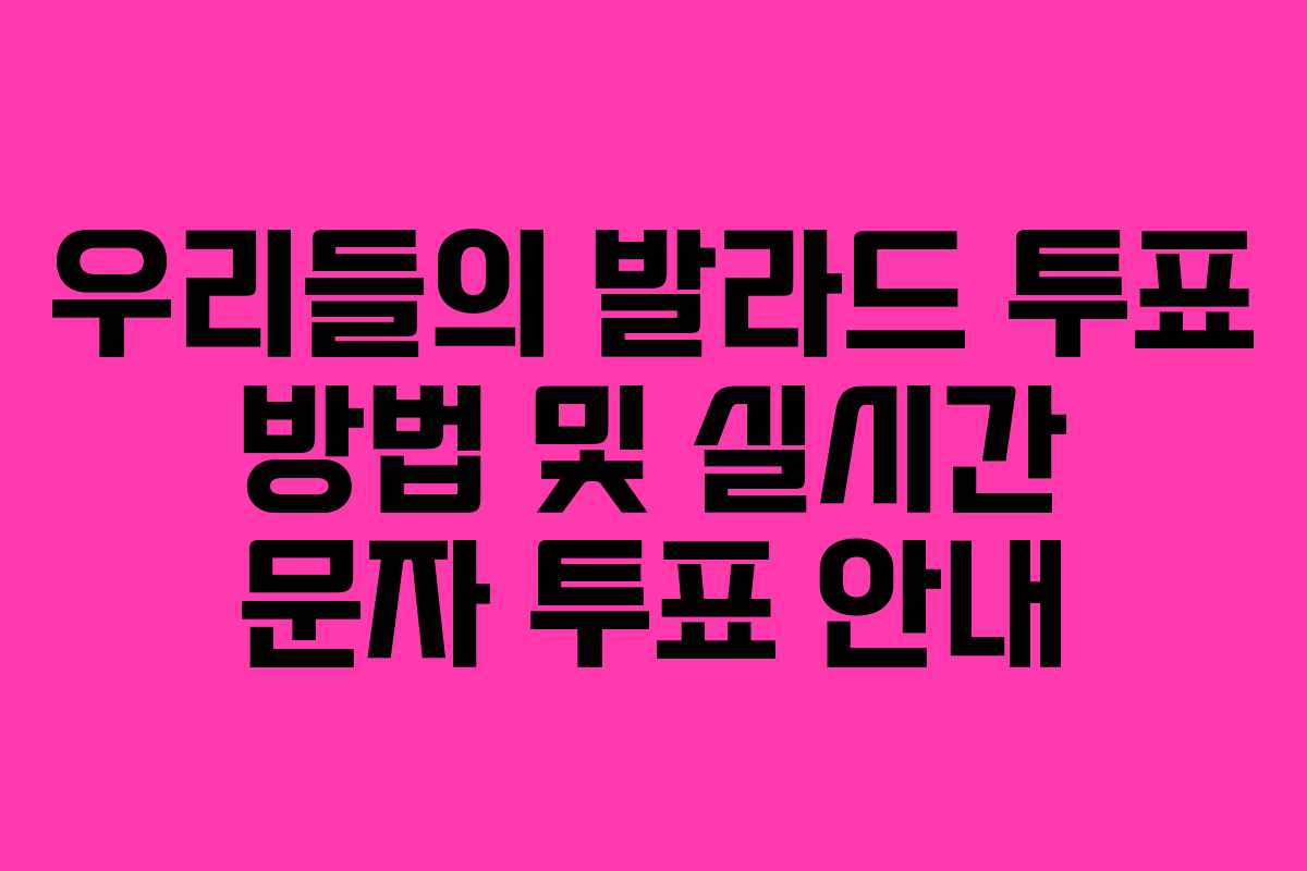 2025년 하반기에 방영될 예정인 ‘우리들의 발라드’는 많은 음악 팬들의 관심을 받고 있는 대형 경연 프로그램입니다. 본 프로그램의 투표 방법에 대해 미리 알아보는 것은 팬들에게 매우 중요한 사항입니다. 이번 글에서는 온라인 투표와 실시간 문자 투표 방법을 자세히 설명드리겠습니다.