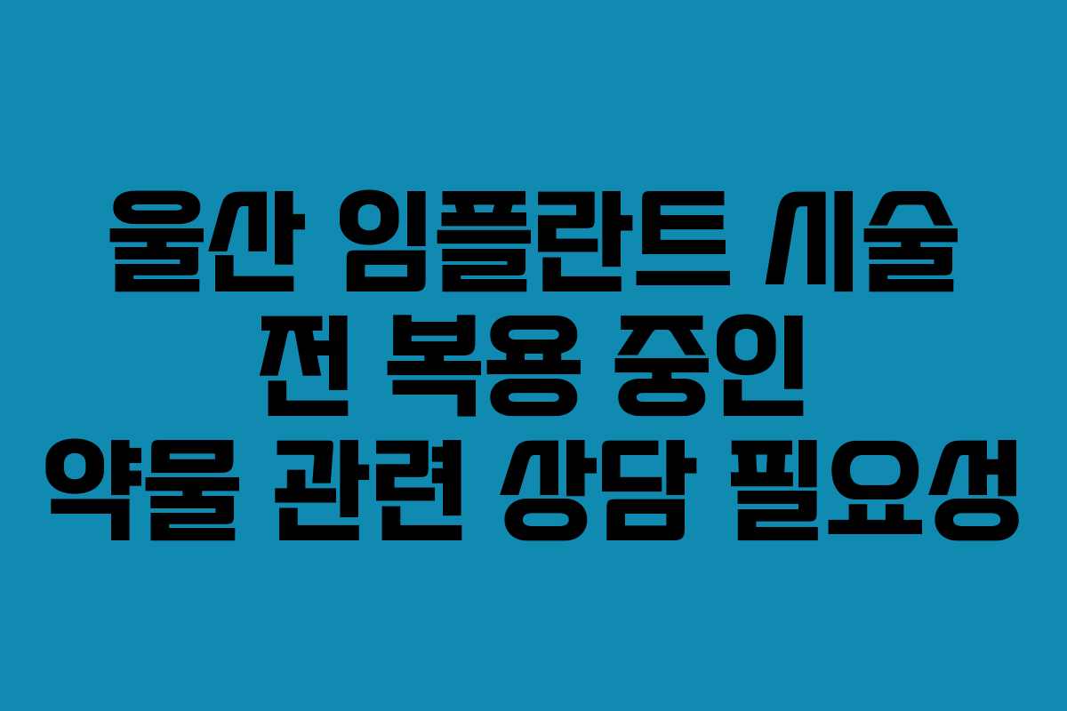임플란트 시술을 고민하는 많은 분들이 계십니다. 특히 울산 지역에서는 임플란트를 고려하는 환자가 늘어나고 있는 추세입니다. 최근 여러 치과에서 진행되는 다양한 할인 이벤트와 행사로 인해 비용 부담이 줄어들고 있지만, 시술 전 복용 중인 약물에 대한 상담이 얼마나 중요한지를 간과하는 경우가 많습니다. 저는 임플란트 시술을 받기 전, 개인적으로 겪었던 약물 상담의 필요성에 대한 이야기를 나누고자 합니다.