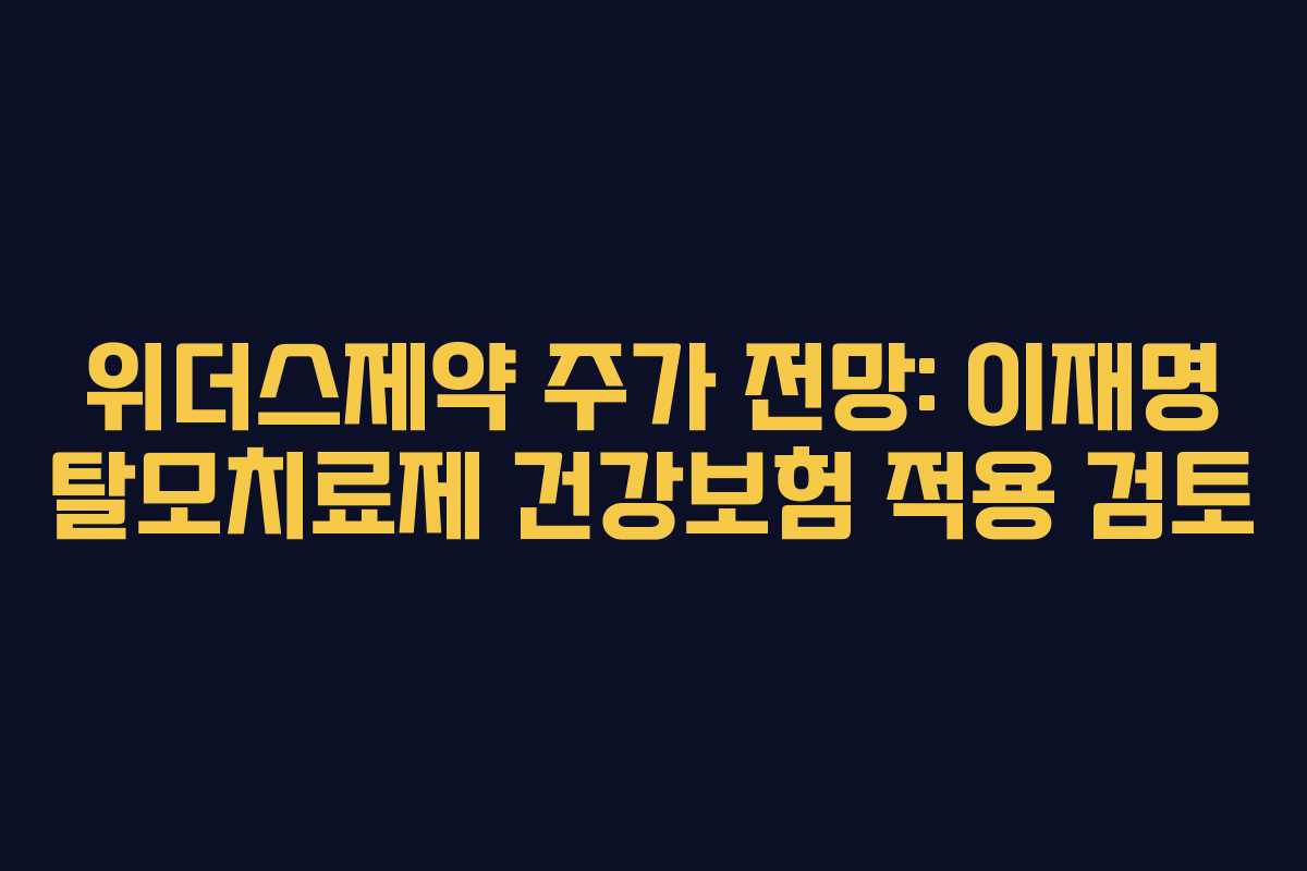위더스제약 주가 전망: 이재명 탈모치료제 건강보험 적용 검토
