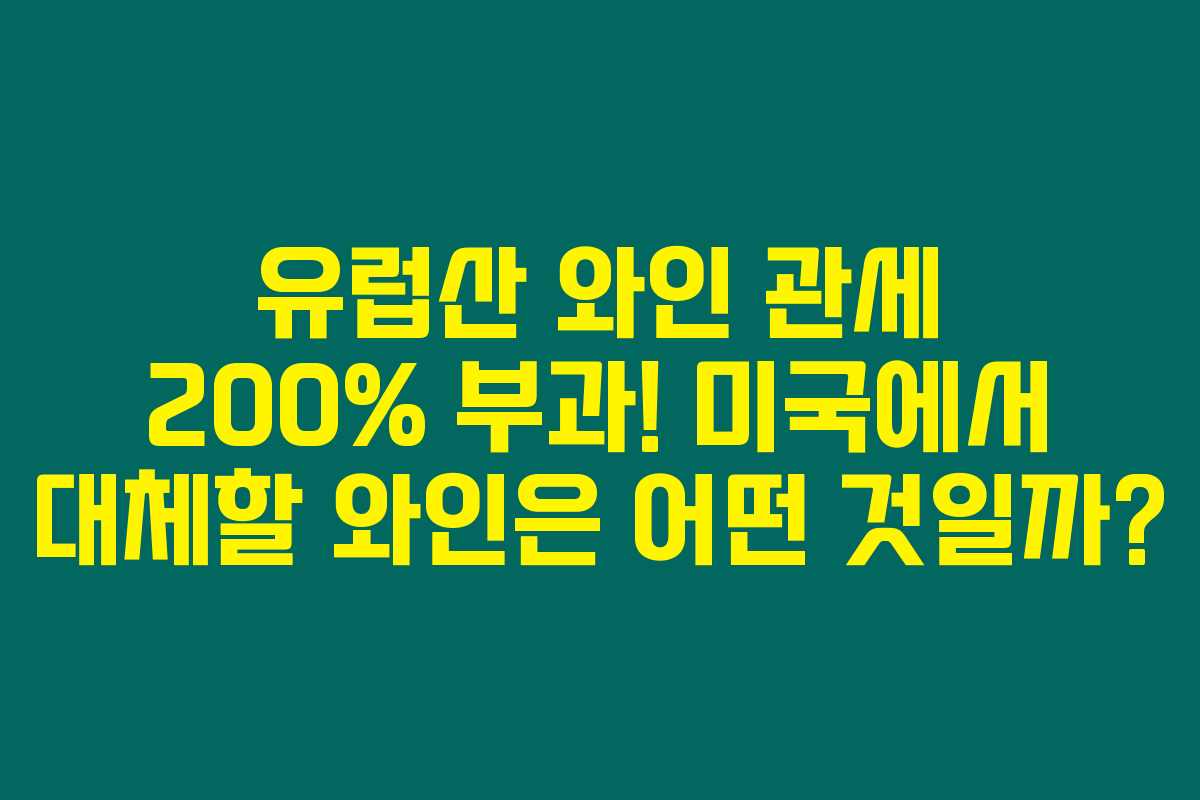 미국의 유럽산 와인에 대한 200%의 관세 부과가 예고되면서 많은 소비자들이 대체 와인을 찾고 있습니다. 종전의 유럽산 와인 대신 어떤 미국산 와인을 선택할지 고민하는 분들을 위해 아래를 읽어보시면 유용한 정보를 얻으실 수 있을 거예요. 이번 글에서는 관세의 영향과 함께 미국산 와인의 대안에 대해 알아보겠습니다.