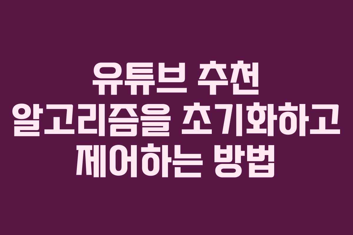 유튜브 추천 알고리즘을 초기화하고 제어하는 방법