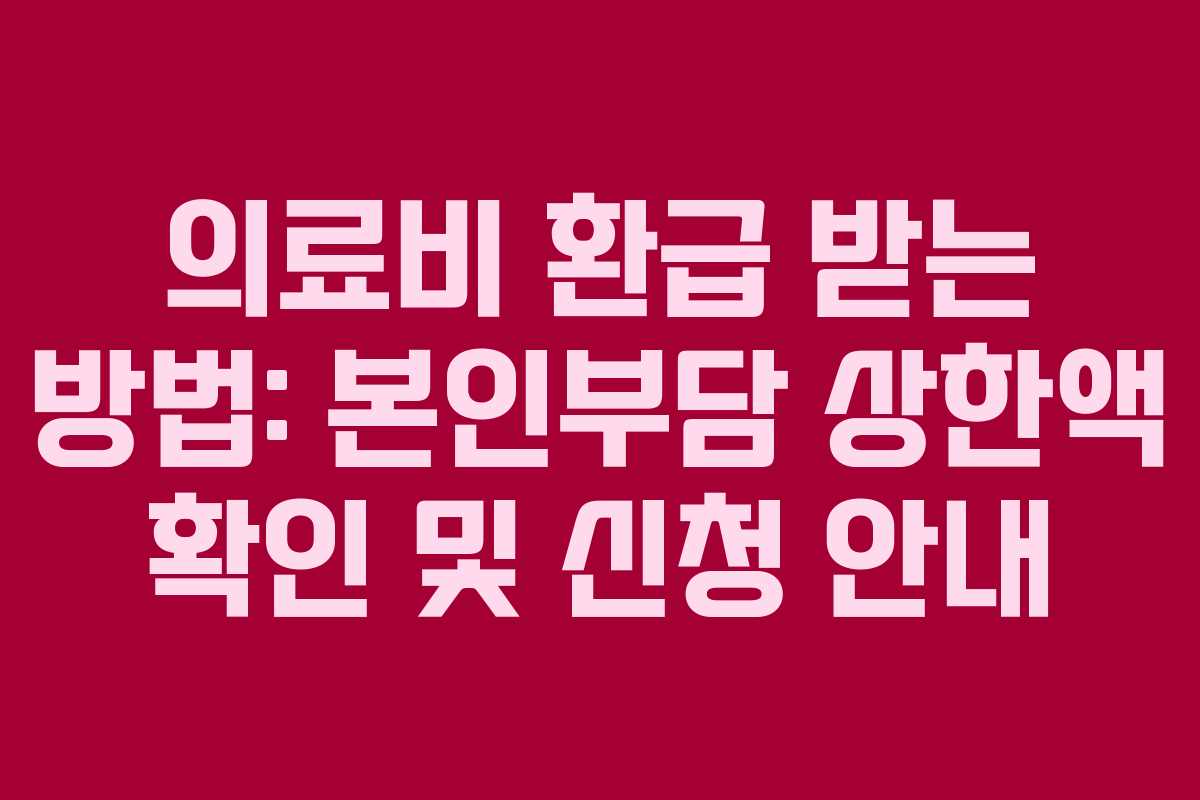 의료비 환급 받는 방법: 본인부담 상한액 확인 및 신청 안내