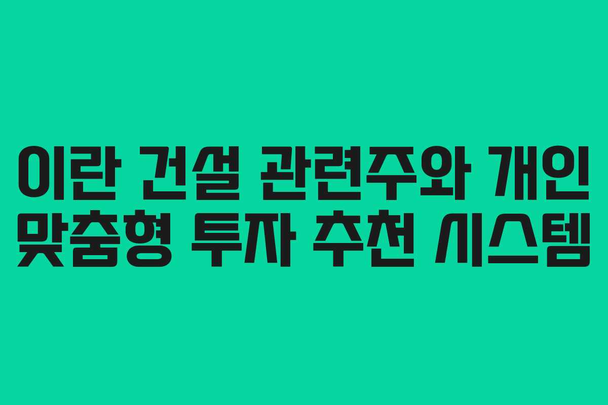 이란 건설 관련주와 개인 맞춤형 투자 추천 시스템