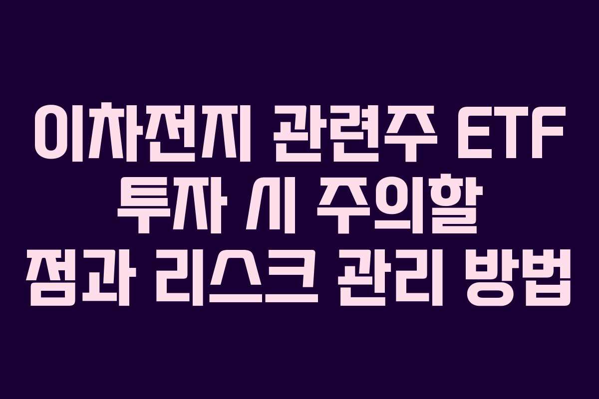이차전지 관련주 ETF에 투자할 때 주의해야 할 사항은 매우 다양합니다. 저도 처음 투자할 때 몇 가지 실수를 통해 많은 것을 배웠습니다.