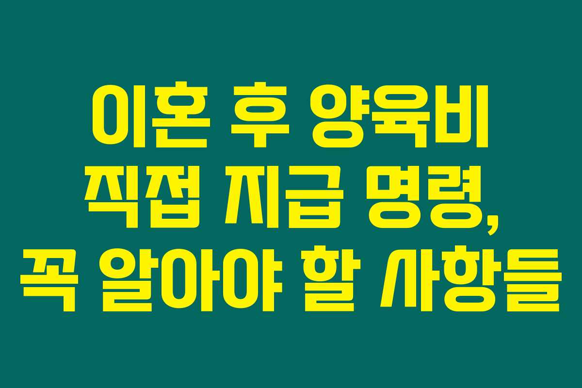 제가 직접 알아본 바로는 이혼 후 양육비 문제는 많은 부부들에게 큰 고민거리가 됩니다. 특히 양육비를 정기적으로 지급해야 하는 의무가 있는 한쪽이 이를 이행하지 않을 때의 대처 방법은 매우 중요하죠. 아래를 읽어보시면 양육비 직접 지급 명령의 개념, 필요한 절차 및 사례 등을 통해 이 문제를 해결하기 위한 정보를 얻으실 수 있을 것입니다.