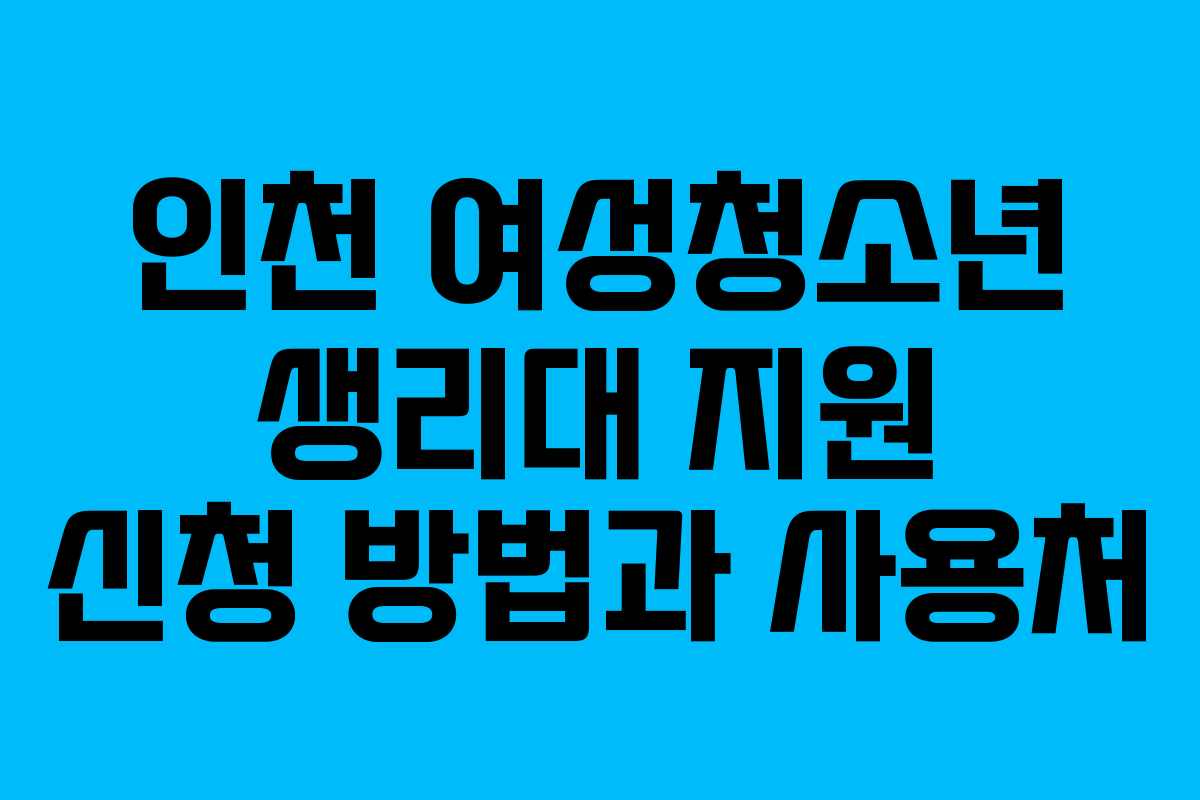 인천시에서는 여성청소년의 건강을 보장하고 건강한 성장을 지원하기 위해 생리용품을 지원하는 사업을 운영하고 있습니다. 2024년 하반기 지원 신청이 시작되었으며, 신청 방법과 사용처에 대해 자세히 알아보겠습니다.