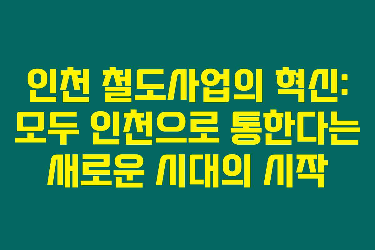 인천의 철도사업이 이렇게 활발하게 진행되는 모습은 정말 놀랍네요. 앞으로의 인천은 그 어느 때보다도 교통의 허브가 될 것입니다. 인천의 철도사업이 시민들의 삶에 가져오는 긍정적인 변화는 한층 더 기대가 되는 일이 아닐까요?