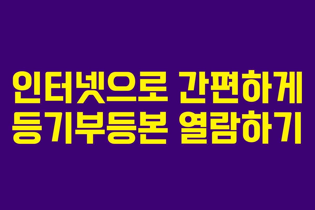 등기부등본은 부동산 거래와 관련된 중요한 서류입니다. 인터넷을 통해 쉽게 열람하고 출력하는 방법을 알아보겠습니다.