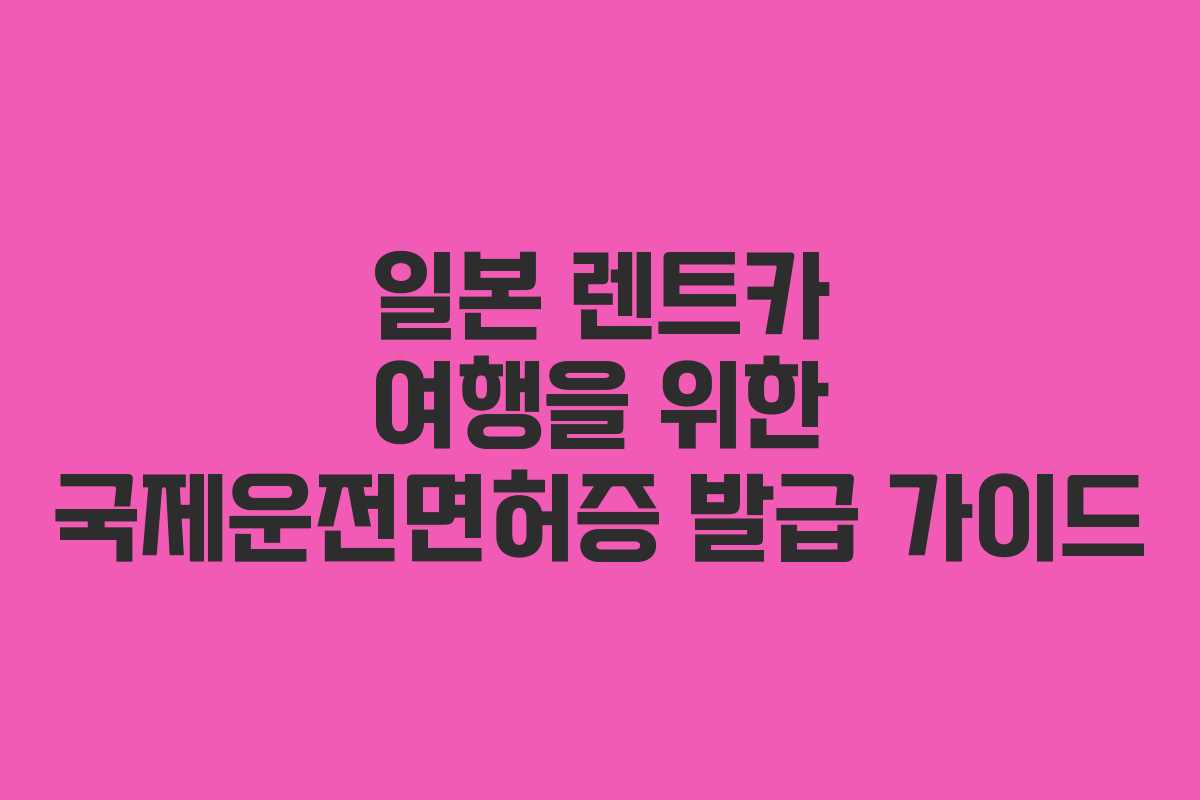 일본에서 렌트카 여행을 계획하고 있다면 필수적으로 준비해야 할 점이 있다. 바로 국제운전면허증의 발급이다. 일본에서는 영문 운전면허증만으로는 렌트카 이용이 불가능하므로, 반드시 국제운전면허증을 발급받아야 한다. 이번 포스팅에서는 국제운전면허증 발급 방법과 필요한 서류를 자세히 안내한다.