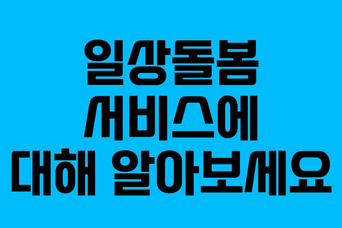 일상돌봄 서비스는 재가 돌봄 및 가사 서비스 등 기본적인 돌봄 서비스를 제공합니다. 개인의 상황에 따라 서비스 이용 여부 및 이용 시간이 조정됩니다.